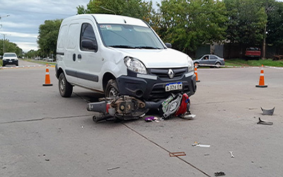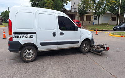Minutos después de las 16 del viernes por la tarde, por causas que se tratan de establecer, en la intersección de Agustín Álvarez y Avellaneda, se produjo una nueva colisión vehicular entre un utilitario Renault Kangoo que circulaba por Avellaneda, en sentido descendente, y una motocicleta Corven 110 cc. color rojo, con dos ocupantes femeninas que transitaban por A. Alvarez, de Sur a Norte.