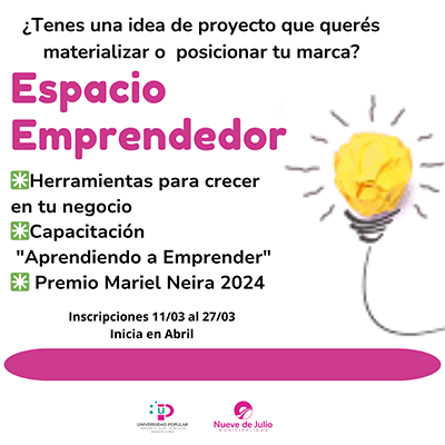 Dentro de la programación anual, se mantendrá el ya tradicional “Espacio emprendedor”, curso anual de capacitación para emprendedores que brinda asistencia técnica para que puedan desarrollar su idea de negocio o potenciarla, utilizando herramientas digitales de comercialización.