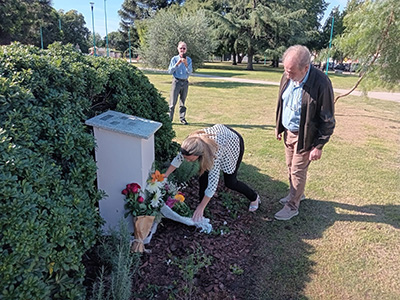 Tras ello, la Intendente Municipal y el presidente del HCD procedieron a colocar una ofrenda floral en el monolito que recuerda a las nuevejulienses desaparecidas: Mercedes Bogliolo, “Mimí” Gassman y María Esther Infesta.