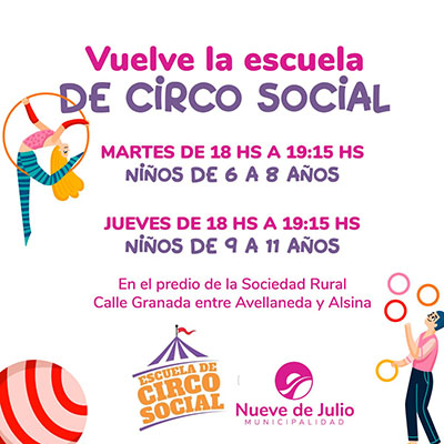 La Municipalidad de Nueve de Julio lanzará una nueva temporada de la Escuela de Circo Social, para niños y niñas de 6 a 11 años inclusive.