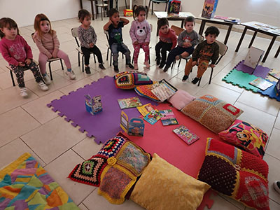También se dialogó con las familias respecto de lo importante que resulta la literatura desde edades tempranas, ya que no solo ayuda a los niños en el desarrollo del lenguaje sino también que, a partir de la lectura, comienzan a adquirir hábitos de escucha, creatividad e imaginación.