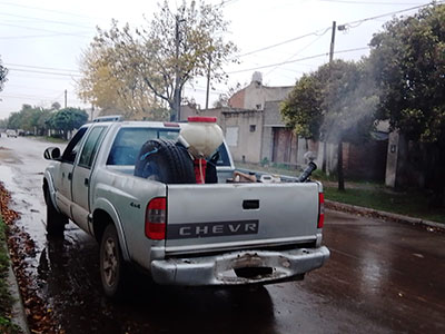Ante la invasión de mosquitos que se viene dando en los últimos días en la ciudad que,como consecuencia de las bajas temperaturas y la alta humedad buscan reparo en nuestros domicilios; la dirección municipal de Espacios Verdes y Control de Plagas, retomó los trabajos de fumigaciones urbanas, en busca de bajar la población de los insectos.