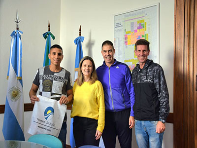 En el encuentro, en el que partició el director muncipal de Deportes, Ariel Pesce, grato encuentro, que compartió la jefa comunal con el boxeador y su coach, Elías Pino, el deportista resumió aspectos de su carrera y el intenso entrenamiento que lleva adelante para afrontar este importante desafío; y recibió de manos de la mandataria una Bandera Nuevejuliense.