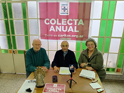 En rueda de prensa, el Padre Adolfo Petti, junto a los integrantes de Cáritas, Mirta Saracena y Carlos Fournier, brindaron detalles de lo que significa para la entidad esta campaña anual, en esta oportunidad bajo el lema “Tu Solidaridad es Esperanza”.
