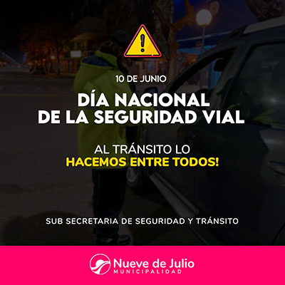 La Municipalidad de Nueve de Julio, a través de la subsecretaría de Seguridad y Tránsito, conmemorará desde hoy lunes 10, la Semana de la Educación Vial con diferentes actividades.
