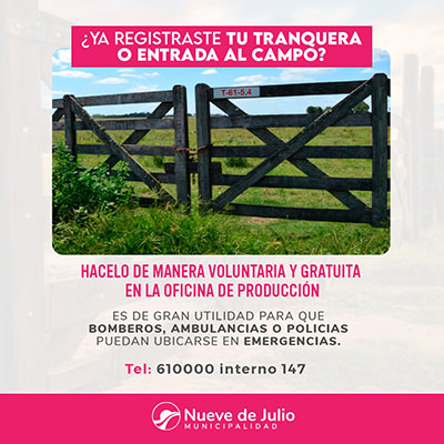 Por ello es importante que cada propietario de una explotación agropecuaria denuncie su tranquera o entrada al campo, en forma voluntaria y gratuita.