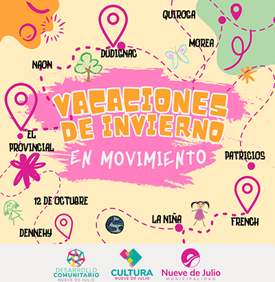 La Municipalidad de Nueve de Julio, desde la dirección General de Cultura; y en conjunto con la Secretaría de Desarrollo Comunitario y la dirección de Delegaciones lanza el programa “Vacaciones de invierno en movimiento”.