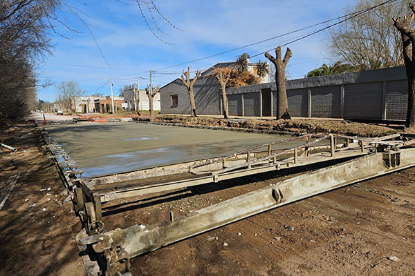 La Municipalidad de Nueve Julio, a través de la secretaría de Obras y Servicios Públicos, desarrolla los trabajos finales de pavimentación con hormigón en la calle Albert Schewitzer.