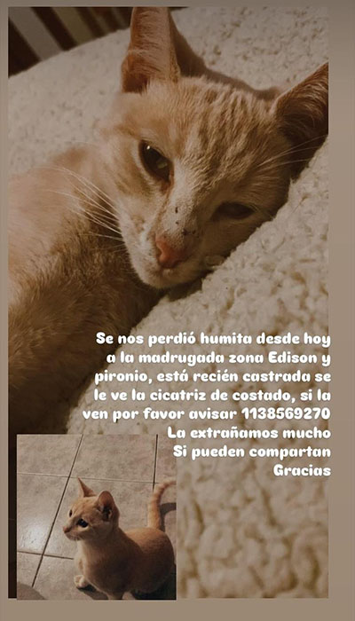 Se perido Humita desde ayer a la madrugada en Edison y Pironio.