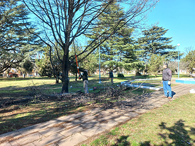 La Municipalidad de Nueve de Julio, a través de la dirección de Delegaciones Municipales, conjuntamente con la dirección de Espacios Verdes y la delegación Municipal de French, se encuentra realizando trabajos de puesta en valor de la plaza Gral. San Martín de esta localidad, donde se retiran especies secas, reemplazándolas por otros ejemplares, sumándose también tareas de mantenimiento y poda; dando a sí respuesta a una solicitud de vecinos.