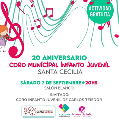 El Coro Municipal Infanto Juvenil “Santa Cecilia”, actualmente conformado por más de 40 coreutas en sus dos niveles, celebrará 20 años de actividad ininterrumpida en la comunidad, con un gran concierto abierto a la misma.