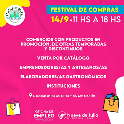 La Cámara de Comercio e Industria y la Oficina de Empleo llevarán adelante el “Festival de Compras” este sábado 14 de septiembre de 11 a 18 en calle Libertad entre Mitre y San Martín.