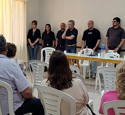 Durante el encuentro abordaron temas inherentes a la seguridad de la localidad tales como: la colocación de cámaras de seguridad en un futuro inmediato así como aspectos del tránsito en lo que hace a circulación de motocicletas y camiones por las calles de la localidad.