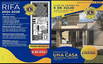 El Club de Leones de 9 de Julio informó que pondrá en marcha hoy la venta le edición número 13 de su tradicional rifa de una vivienda a estrenar; que como en ediciones anteriores, ha despertado gran interés en la comunidad.