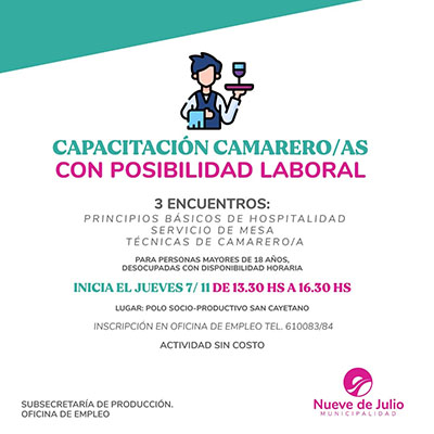 La subsecretaría municipal de Producción y la Oficina de Empleo dictarán una capacitación para camareros, con posibilidad de salida laboral.