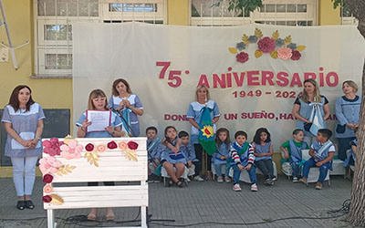 Mientras que la directora del establecimiento, Natalia Gómez recordó que el jardín comenzó afuncionar el 2 de mayo de 1949 en una casa alquilada, con paredes de adobe y que se inauguró el 29 de junio de 1951 convirtiéndose en el primer jardín de infantes del distrito.