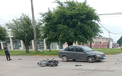 El jueves alrededor de las 8,30 se produjo un nuevo accidente entre un automóvil (en este caso un Chevrolet Corsa) y una motocicleta 110 cc., en la intersección de Mitre y Joaquín V. González.
