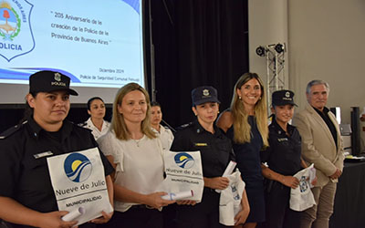 En la oportunidad, se destacó el trabajo de la fuerza y el compromiso de sus efectivos, en tanto que la jefa comunal nuevejuliense y los funcionarios de su Gabinete, procedieron a entregar reconocimientos a efectivos de la Estación de Policía Comunal de 9 de Julio que se destacaron por su labor en el esclarecimiento de hechos relevantes durante 2024.