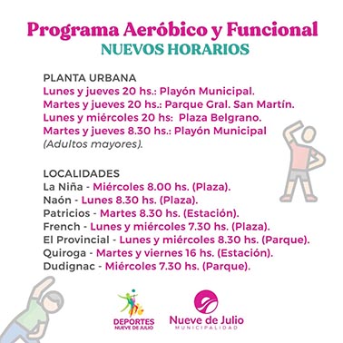 La dirección de Deportes de la Municipalidad de Nueve de Julio comunica los nuevos horarios de