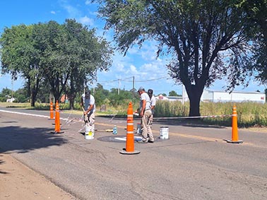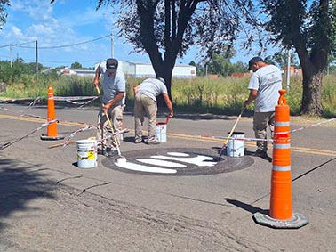 ejecutando obras de demarcación horizontal sobre la Avda. Mitre, en el acceso desde Ruta Provincial