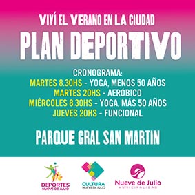 La Dirección de Deportes de la Municipalidad de Nueve de Julio invita a toda la comunidad a participar de actividades deportivas que se desarrollan en el Parque General San Martín y que tienen por objeto fomentar el bienestar de los vecinos.