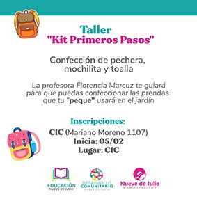 La Secretaría de Desarrollo Comunitario y la Dirección de Educación lanzan un taller denominado “Kit Primeros Pasos”, a través del cual se enseñará a confeccionar pecheras, mochilitas y toallas para niños de los primeros niveles de educación.