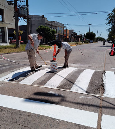 La subsecretaría de Seguridad y Tránsito está realizando demarcaciones horizontales en lomos de burro y colocando señales de sendas peatonales. De este modo busca mejorar visibilidad de los elementos y generar mayor seguridad vial.
