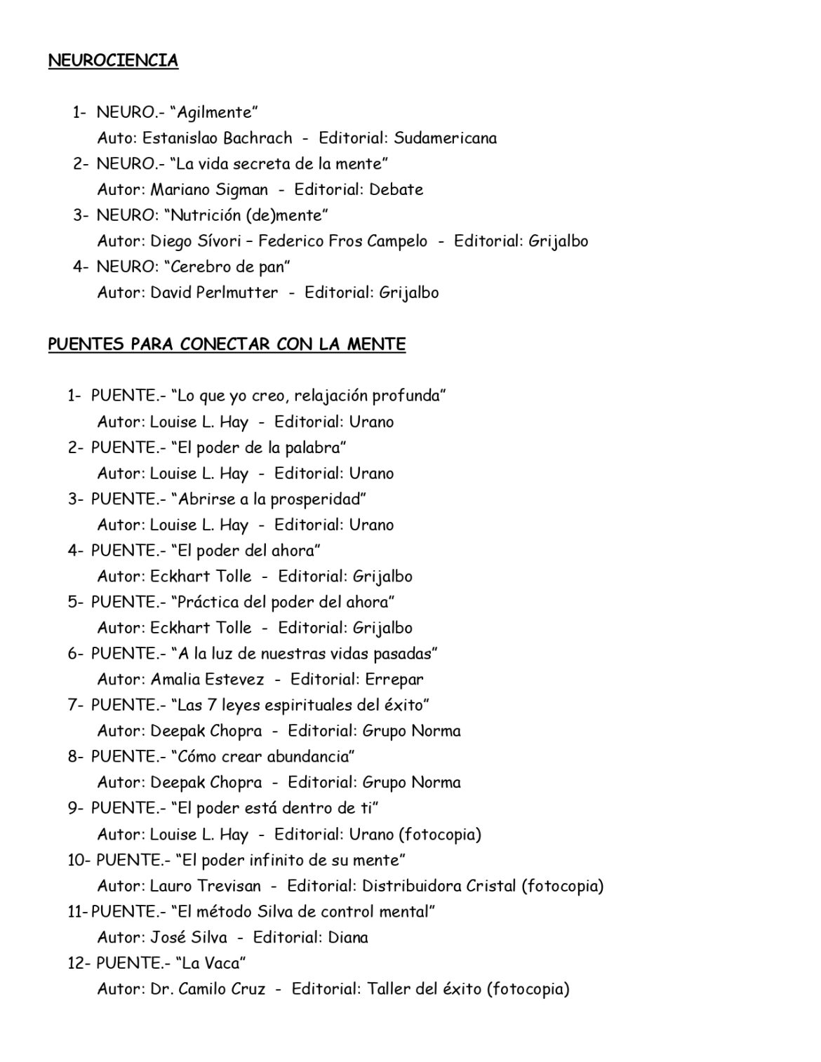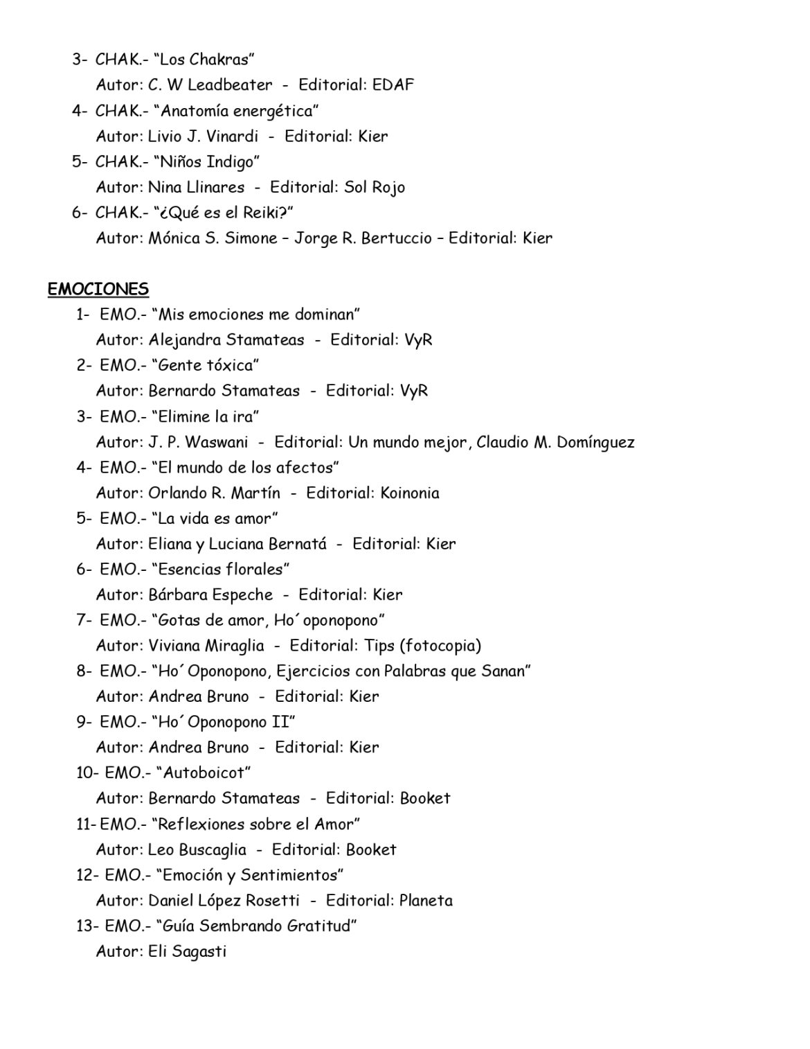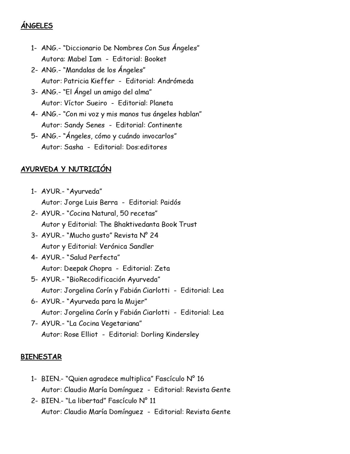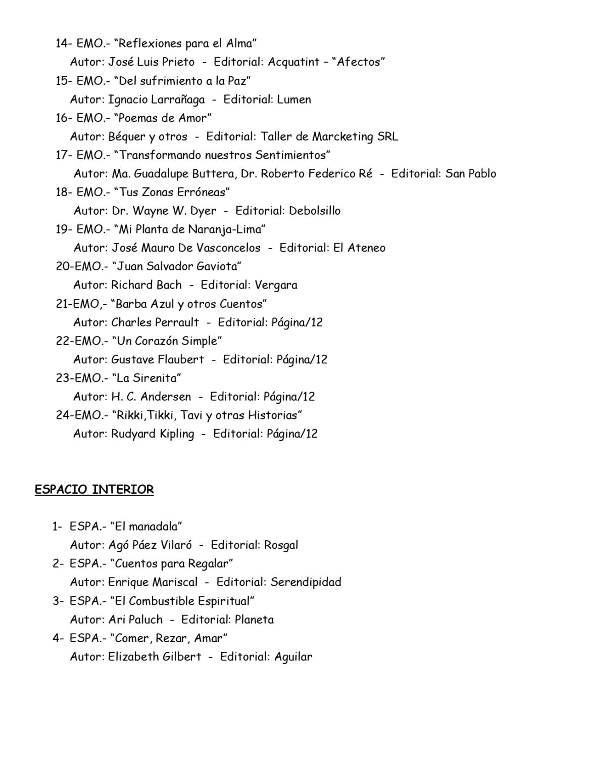 La Biblioteca de autoayuda de la Asociaciòn Española difundiò el listado de libros que estàn a disposiciòn de sus socios.