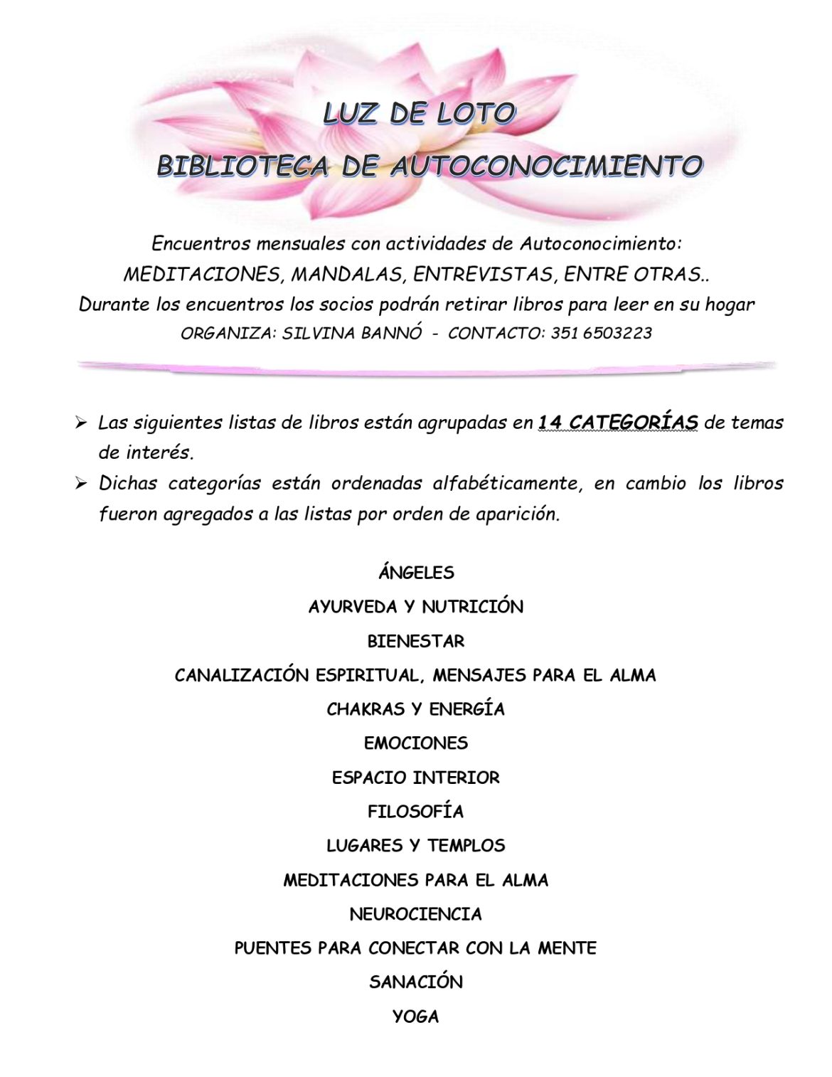 Aquellos interesados en sumarse a la biblioteca, con una suma mòdica mensual, se pueden dirigir a la Asocaciòn o comunicarse con Silvina Banno, al 351 6503223