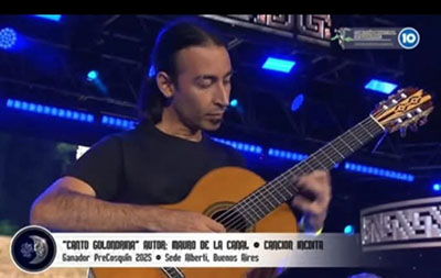 El músico y luthier nuevejuliense Ricardo Rolando, radicado desde hace varios años en la ciudad de La Plata, se presentó esta semana en una de las nueve lunas que tiene el Festival Nacional de Folkclore Cosquín 2025.