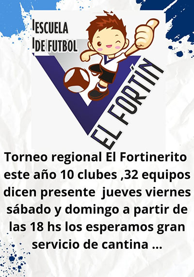 Desde ayer jueves, y hasta el día domingo, en el estadio del Club Atlético El Fortín, se disputa una nueva edición del Torneo de Fútbol Infantil “El Fortinerito”, en el que participan 10 clubes, con 32 equipos de las distintas categorías: 2013, 2015 y 2017.