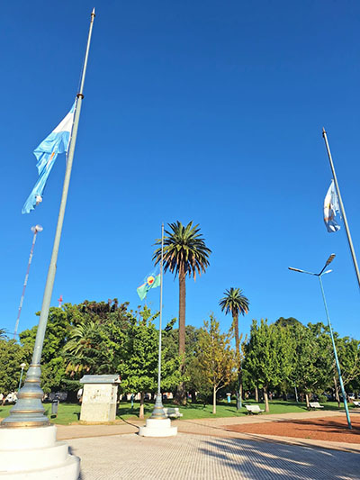 La medida nacional se oficializó mediante el Decreto 178/2025 de este lunes al publicarse en el Boletín Oficial y establece, precisamente, que la bandera nacional permanecerá a media asta en los edificios