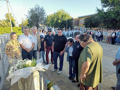 Tras el ingreso de las banderas de Ceremonia y la entonación del Himno Nacional Argentino, a cargo de la banda municipal “Jesús Abel Blanco”, se colocó una ofrenda floral en homenaje al Soldado Néstor Francísquez y luego se rindió un minuto de silencio.