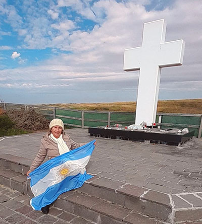 Asimismo recordó con emoción que en el viaje siempre estuvo acompañada de su bandera Argentina, llegando al Cementerio de Puerto Argentino, donde junto a tres ciudadanos mendocinos pudo compartir una oración en homenaje a los caídos y a los ex combatientes que sobrevivieron a la guerra “devolviéndoles un poco el sacrificio que han hecho por nosotros”.