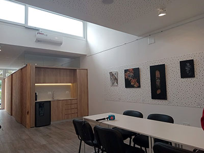 La jornada de inauguración concluyó con la apertura de una muestra de la arquitecta y artista plástica Miriam Matru, que se podrá visitar en la nueva sede.