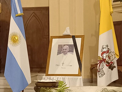 La comunidad local rezó por el eterno descanso del recientemente fallecido Papa Francisco.
