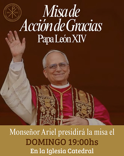 Este domingo, el obispo diocesano, Monseñor Ariel Torrado Mosconi, presidirá la misa en acción de gracias por el nuevo papa León XIX. Será en la Iglesia Catedral a las 19:00.