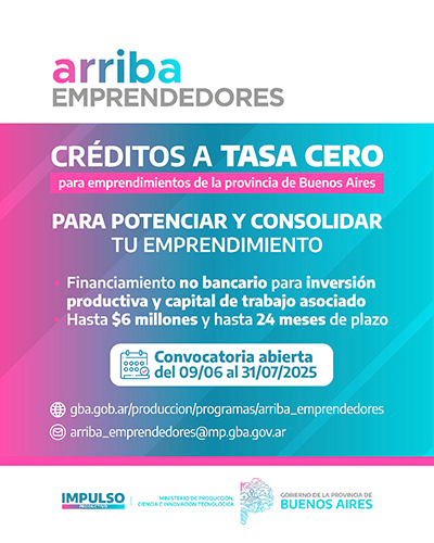 La subsecretaría de Producción y Empleo de la Municipalidad de Nueve de Julio informa que el Ministerio de Producción, Ciencia e Innovación Tecnológica de la Provincia de Buenos Aires, anuncia el lanzamiento de la convocatoria 2025 del Programa “Arriba Emprendedores”, que otorga créditos para emprendedores y emprendedoras bonaerenses que tengan un proyecto productivo.