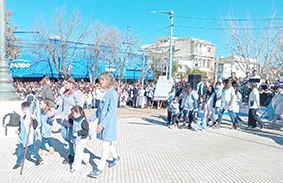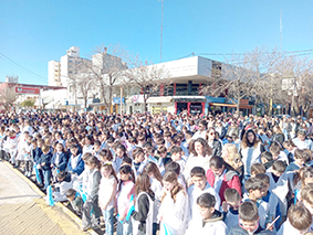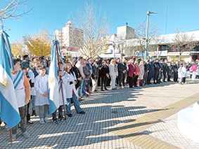 En Plaza Belgrano de nuestra ciudad, se realizó el pasado jueves un acto conmemorativo del Día de la Bandera, en el que alumnos de cuarto grado de escuelas primarias prometieron lealtad a la Bandera Nacional.