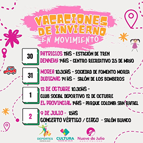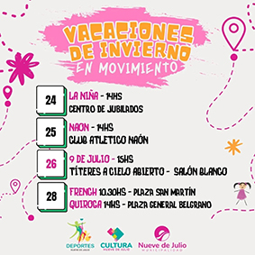 La Municipalidad de Nueve de Julio, a través de las direcciones de Cultura y Deportes, lanza “Vacaciones de invierno en movimiento”.