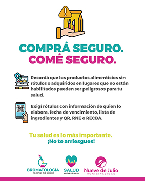 La Municipalidad de Nueve de Julio, a través de la dirección de Bromatología, recuerda que al momento de comprar productos alimenticios, es fundamental revisar que los rótulos estén completos y contengan información clave como la fecha de vencimiento, el Registro Nacional de Establecimiento (RNE), el Registro Nacional de Producto Alimenticio (RNPA), el código QR cuando corresponda y la integridad del envase.