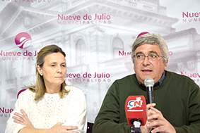 En el marco de la crítica situación hídrica que atraviesa el Partido de 9 de Julio, donde días atrás la Jefa Comunal, María José Gentile, había advertido que un 50 % de las hectáreas se encuentran bajo agua, el Ministro de Desarrollo Agrario de la Provincia, Javier Rodríguez, llegó a la ciudad para reunirse con la Intendente. También participaron la Sociedad Rural, el Círculo de Ingenieros Agrónomos de 9 de Julio y CARBAP. Se acordó una mesa de trabajo conjunta.