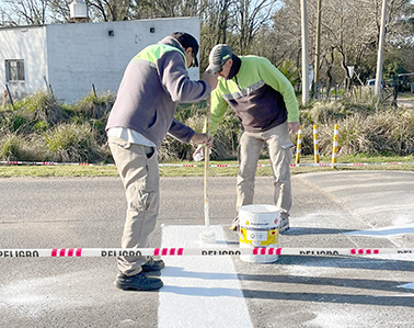 La Municipalidad de Nueve de Julio, a través de la Subsecretaría de Seguridad y Tránsito, se encuentra ejecutando obras de demarcación horizontal, que comprenden la señalización de sendas peatonales, lomos de burro, cordones e indicaciones de circulación.