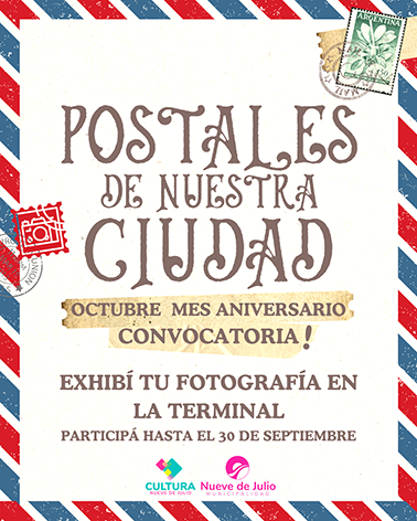 En el marco del mes aniversario de Nueve de Julio, la dirección General de Cultura invita a participar de la exposición fotográfica “Postales de nuestra ciudad”, una propuesta que busca reunir miradas diversas sobre nuestra identidad y nuestro entorno.