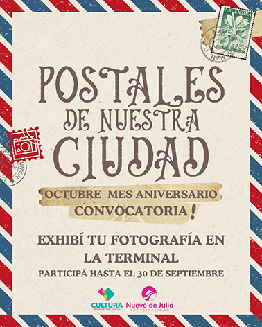 En el marco del mes aniversario de Nueve de Julio, la dirección General de Cultura invita a participar de la exposición fotográfica “Postales de nuestra ciudad”, una propuesta que busca reunir miradas diversas sobre nuestra identidad y nuestro entorno.