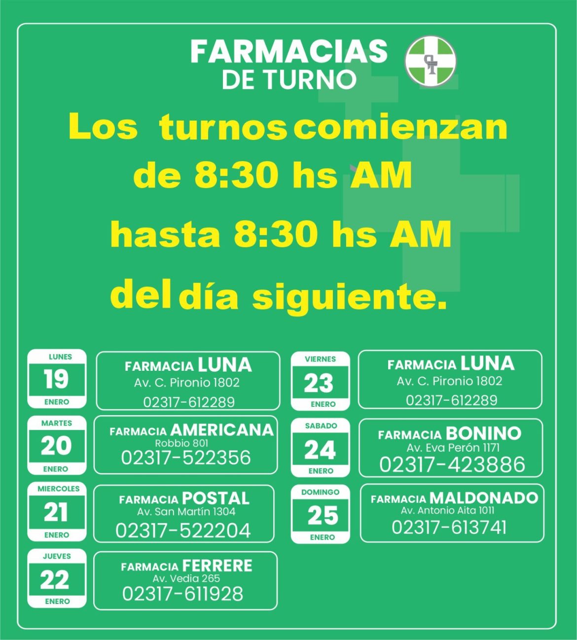 Farmacias de turnos semana del 12-01-2026 al 18-01-2026