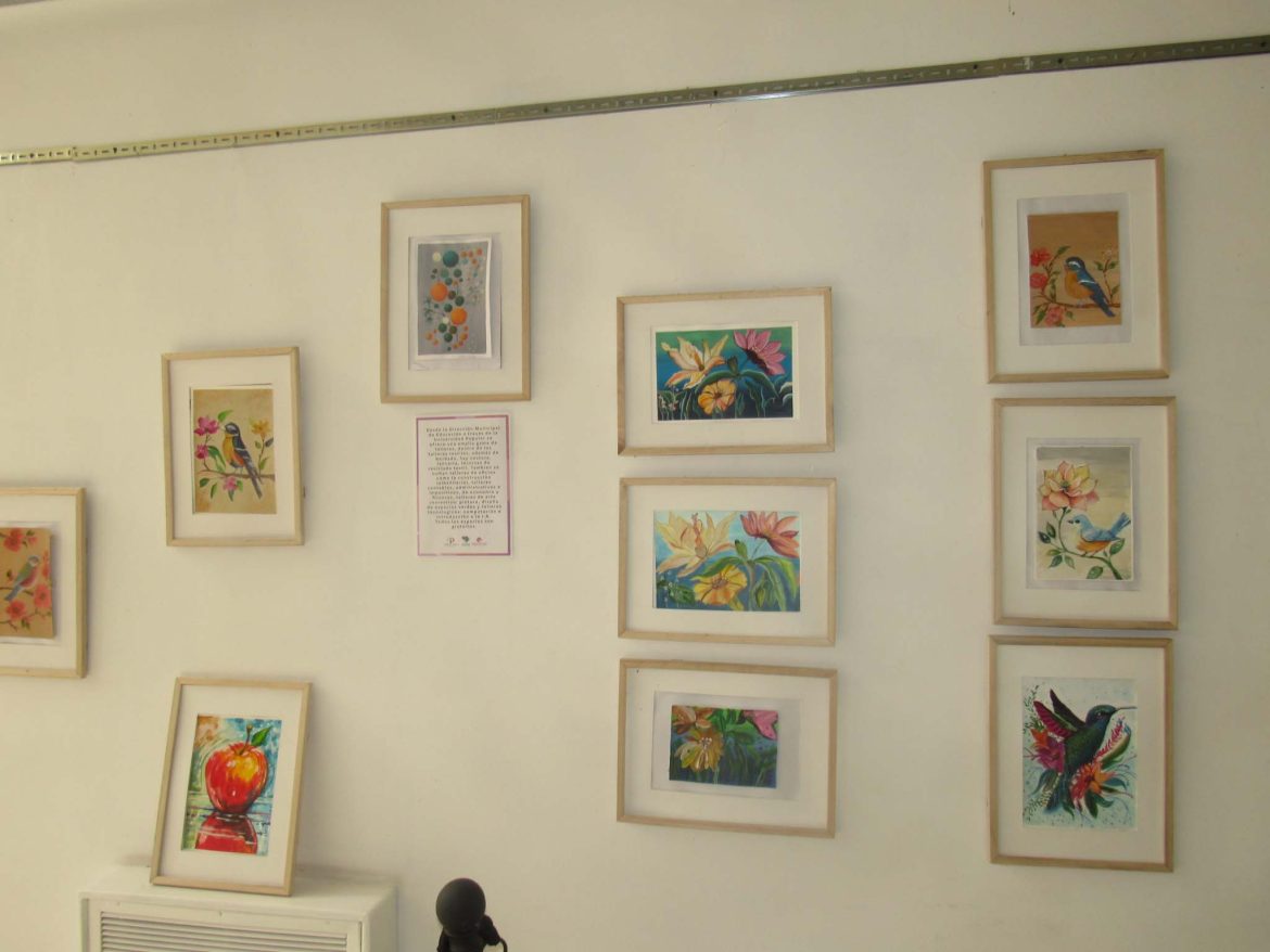 . En esta muestra se pueden los trabajos de las alumnas explorando temas como paisajes, flores, mares, y pájaros.