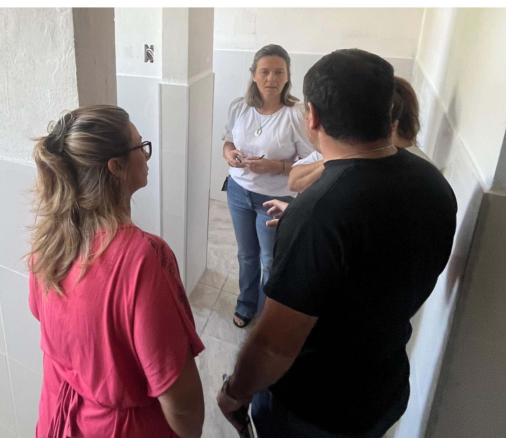 La Intendente Municipal de Nueve de Julio, María José Gentile, acompañada por funcionarios de su gabinete, visitó en la jornada de hoy el Hogar de Ancianos “Santo Domingo de Guzmán”, donde se ejecutan importantes trabajos de refacción en el sector de sanitarios.