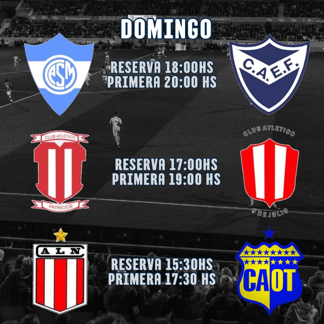 Mientras que a  las 19 h Atlético Patricios recibe en su cancha a Atlético 9 de Julio.