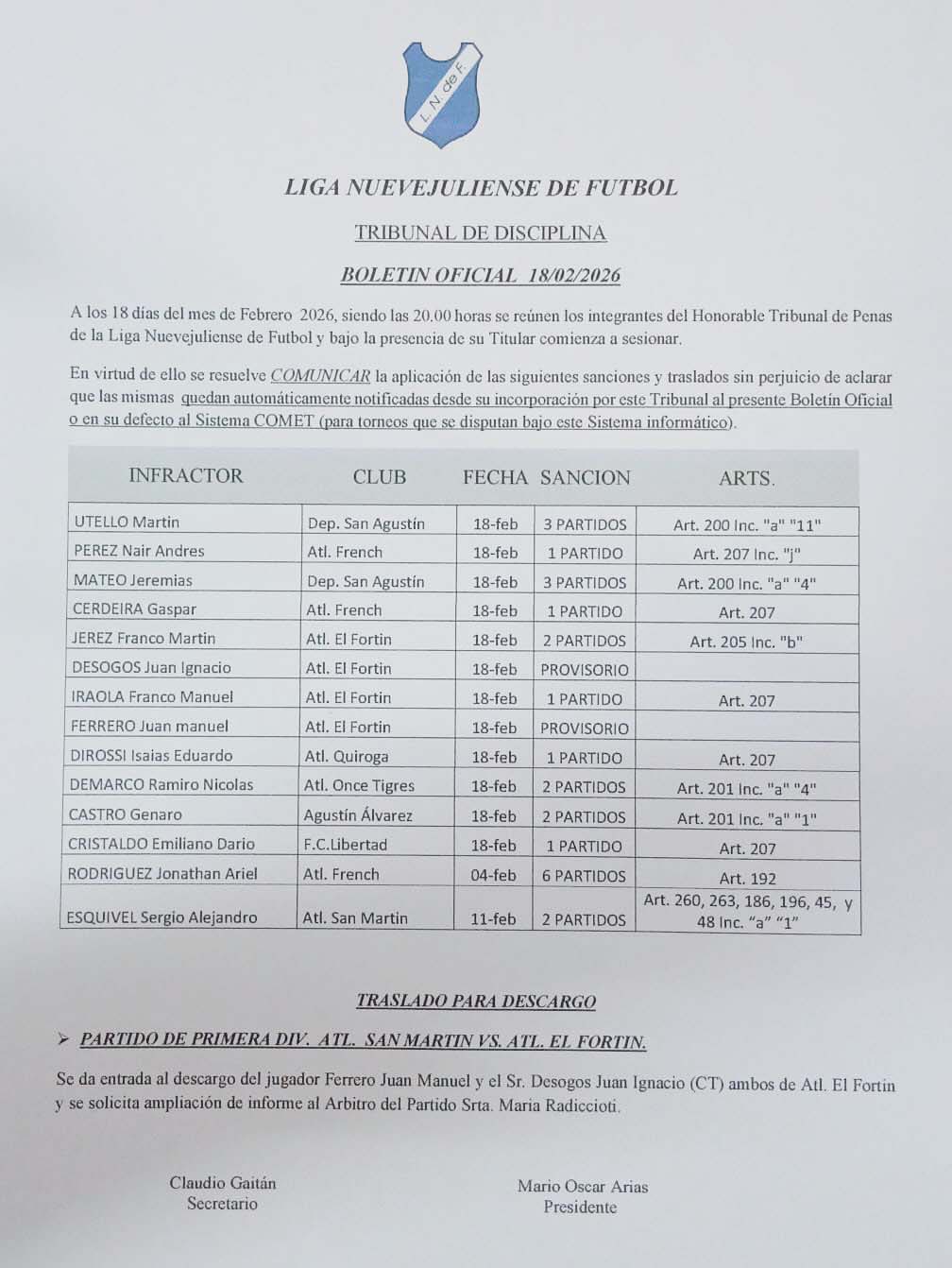 Boletín oficial del 18/02/2026